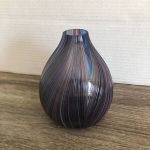 Elegant glass vase with multicolour swirl design. Perfect for home decor. Handblown glass. Unsigned. Matches any colour scheme as it is a rainbow of colours!