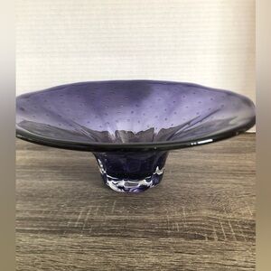 Handblown Purple Art Glass Bowl with Controlled Bubbles