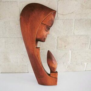 Handcarved Virgin Mary Madonna Wood Sculpture Wall Hanging Polish Artist Bust Profile Praying Hands