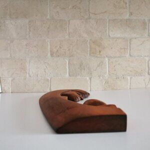 The back has an indent where a nail can be used to hang this sculpture on the wall.