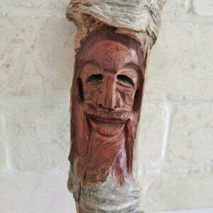 Handcarved Wood Tree Spirit Old Man Wizard Wooden Signed Carving Statue 10"
