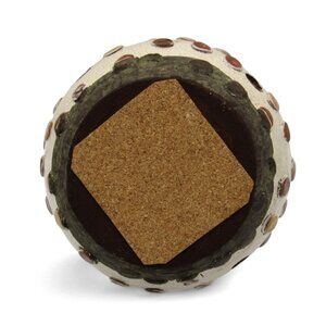 This vase brings a touch of artistic charm to any space with its handcrafted design, featuring a crackle finish and polka dots in earthy hues.