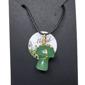 This handcrafted aventurine mushroom necklace is paired with an 18-inch cotton wax cord for a natural aesthetic. Ideal for adding a touch of nature-inspired elegance to your outfit.