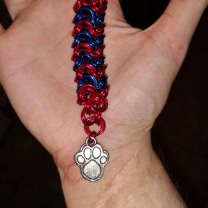 This handmade keychain consists of an intricate chainlink / chainmaille design with fuscia and electric blue metal links, ending in a lovely little paw-shaped pendant. Super cute and unique gift idea! โค