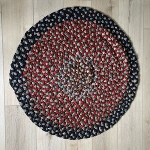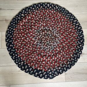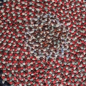 Enhance your home with this handcrafted braided rug. Featuring a blend of red, brown, and black tones, it adds a cozy touch to any room. Perfect for adding warmth and style to your space.