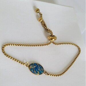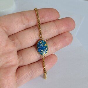 Handcrafted Boho Gold Blue Agate Gemstone Oval Dainty Adjustable Bracelet