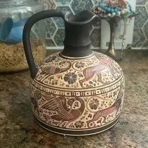 This exquisite handcrafted ceramic pitcher features a detailed design in earthy tones. Perfect for adding a touch of elegance to your home decor.
