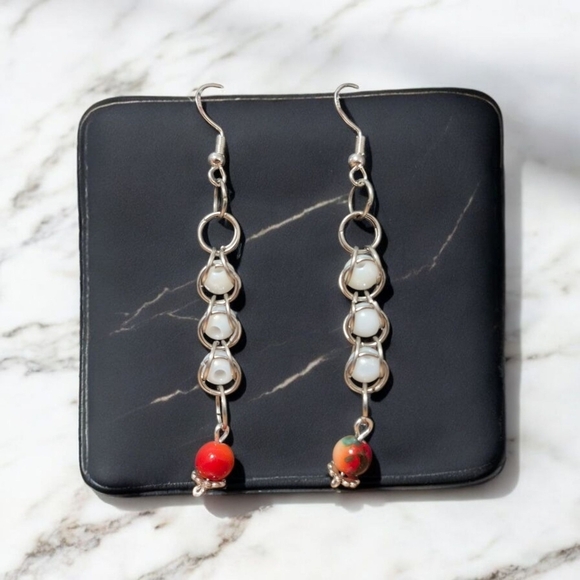 Handcrafted Chainmaille & Bead Earrings 2.5"
