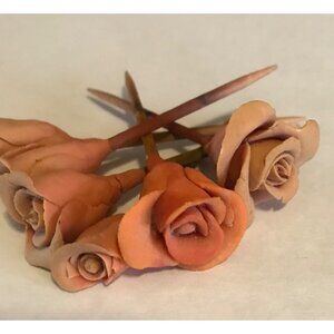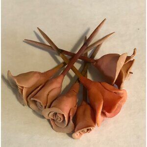 Handcrafted Clay Rose Cupcake Toppers On Toothpicks 2 1/2" Set of 6