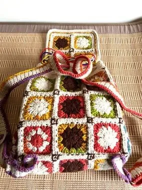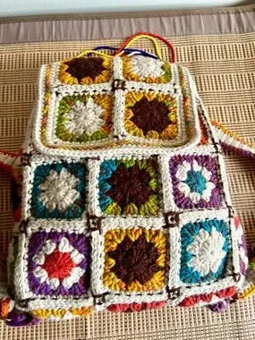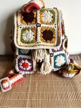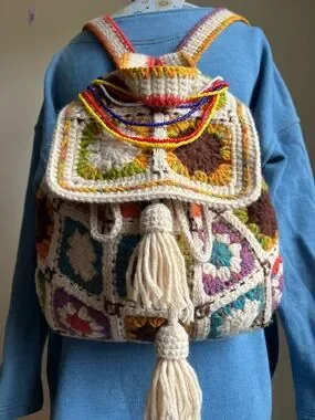 Handcrafted Cream Multicolor Crochet Backpack
