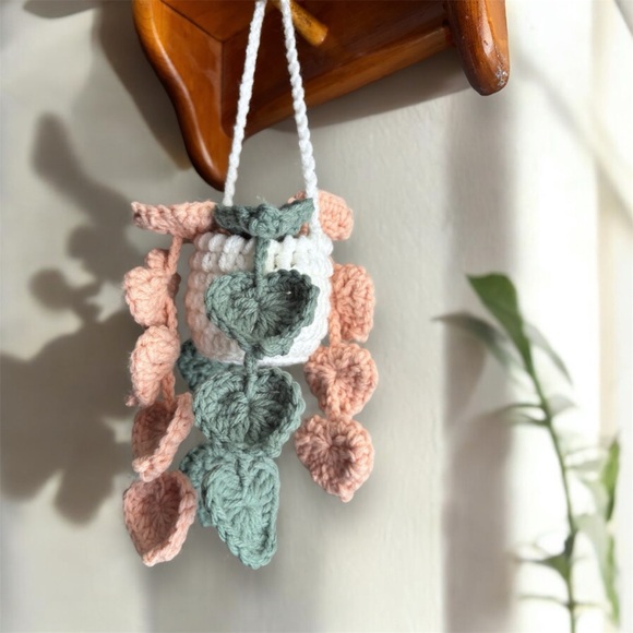 Enhance your space with this charming handcrafted crochet hanging decor. Featuring delicate green and pink hues, it adds a touch of elegance to any room. Perfect for those who appreciate unique home accents.