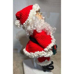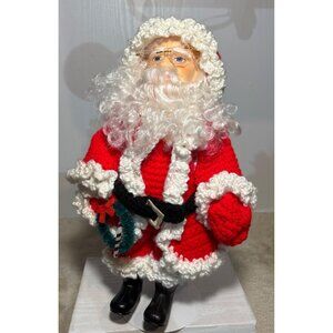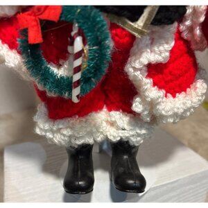 Handcrafted Crochet Santa Claus Doll With Wreath Candy Cane 14" Tall w/ Stand