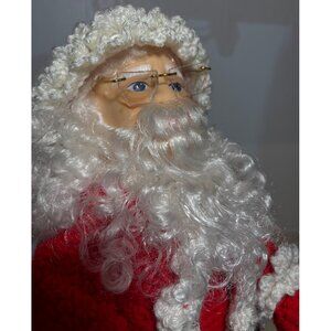This charming Santa Claus doll, standing at 14 inches tall, is a festive addition to holiday decor. Featuring a hand-crocheted red and white outfit, he holds a wreath and candy cane, adding a whimsical touch. His realistic face and fluffy beard complete the traditional Santa look.