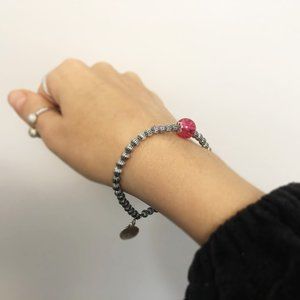 Bracelet size: about 4.15” length (including charm and centerpiece bead), about 2.25” diameter (before stretching)