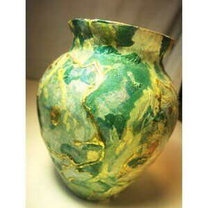 🌿 Handcrafted Decorative Vase with Floral Design - 7.5" Tall Vintage 🌿