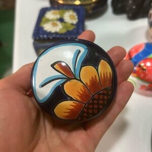Handcrafted Floral Ceramic Small Trinket Box - Multicolor 2.5"