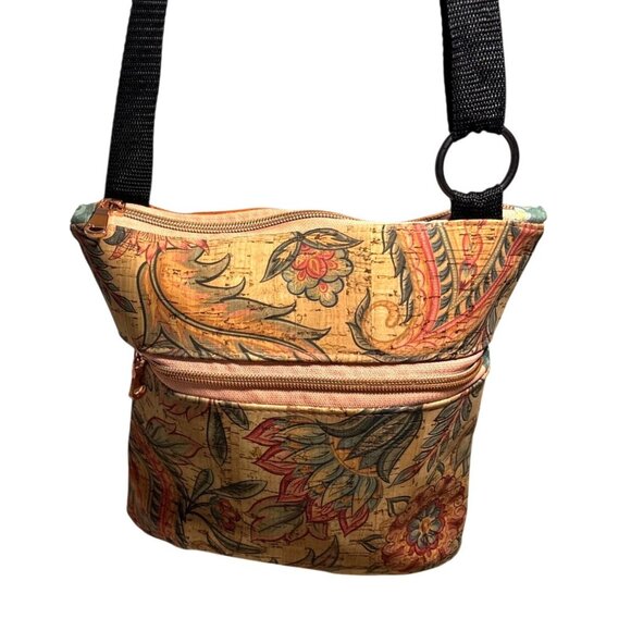 Handcrafted Floral Cork Crossbody Bag Adjustable Strap & Zippered Compartments