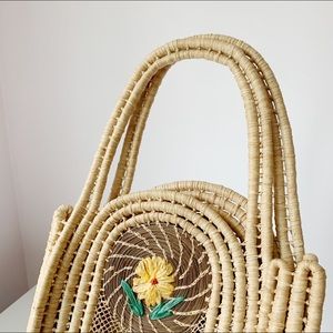 Handcrafted Floral Embroidered Rattan Tote