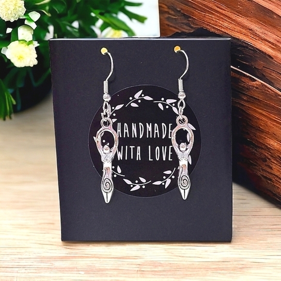 Discover these handcrafted Goddess earrings, perfect for any look. Traditional art style figurines.