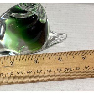 Handcrafted Green & Clear Swirl Glass Snail Figurine Paperweight 5" Tall