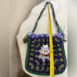 Charming handcrafted crochet bag featuring a playful design. Brand new.