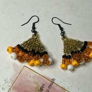Handcrafted Halloween Beaded Earrings - Gold and Black