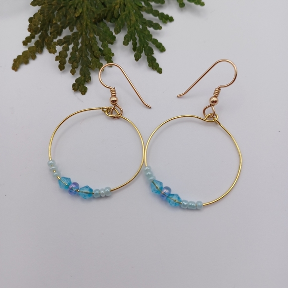Lovely gold-tone hoop earrings with blue bead details. Lovely soft colours.