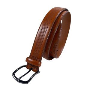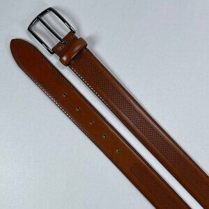 Genuine Leather Belt Mens 38/95 Handcrafted in Italy Cognac Brown. This stylish and durable belt is crafted from genuine leather in Italy. It features a classic cognac brown color with a unique cross-hatch detail, showcasing high-quality craftsmanship. Perfect for adding a touch of sophistication to any outfit.