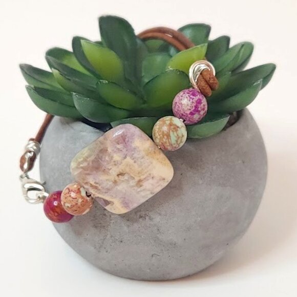 Handcrafted Jaspurite Stone and Leather Bracelet
