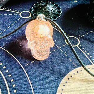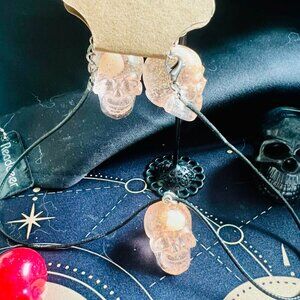 Handcrafted Jewellery Transparent Skull Resin Earrings & Pendant Necklace Set