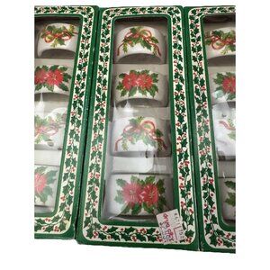 Handcrafted New Ceramic Christmas Napkin Rings Set of 16 Poinsettia & Holly VTG!
