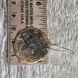 - handcrafted round drop earrings, featuring a unique abstract shape in gold and silver tones.