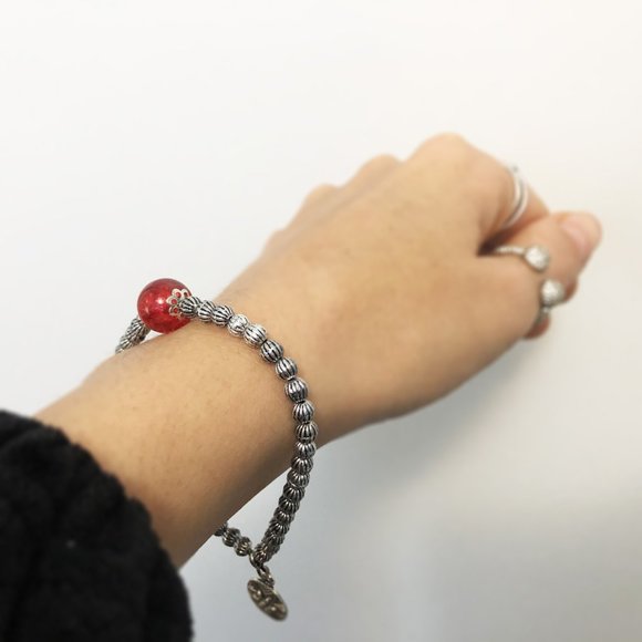 Handcrafted Root Chakra Bracelet Red Glass Centerpiece Bead