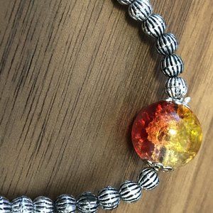 Handcrafted Sacral Chakra Bracelet Red/Yellow Glass Centerpiece Bead