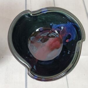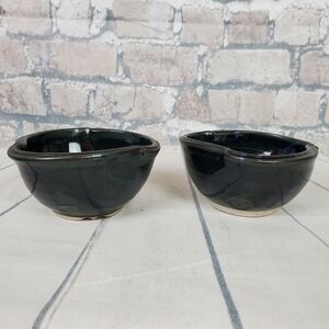 Handcrafted Studio Pottery Tri Point Cereal Bowls Splash Glaze Black Set of 2