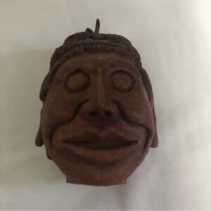 Handcrafted Terracotta Tribal Mask Aztec Clay Head Heavy Sculpture 6x4” Hollow