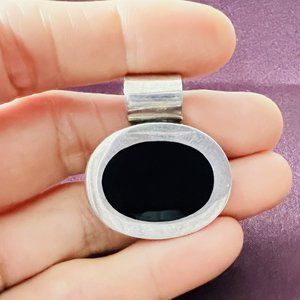 Handcrafted Vintage 925 Sterling Silver Classic Huge Pendant Set with Black Onyx