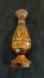 Beautiful handcrafted wooden candleholder with intricate patterns. Features a mix of black, brown, and tan colors. Just a cute little thing!