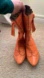 Rich orange-brown tone with lace-up detail on the shaft and a comfortable low heel.