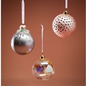 Handcrafted jewel glass and porcelain Christmas baubles set of 3 (three) NWT