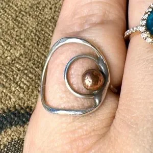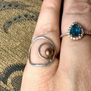 Handcrafted silver and cop ring. Created by a local Sterling silver artist but isn’t stamped. It takes a beautiful shine. Approximately a size 6.
