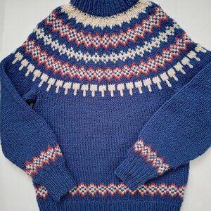 Handknit Blue Pink & White Fair Isle Sweater