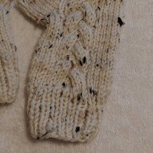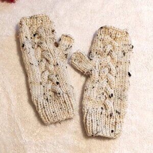 Handknit Fingerless cabled pattern mittens wrist warmers gloves ARAN TWEED