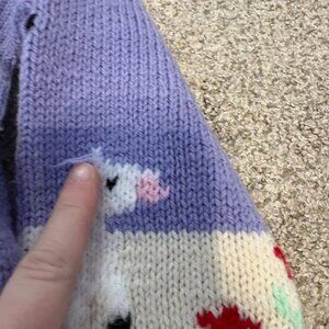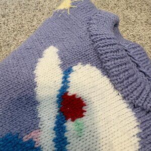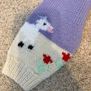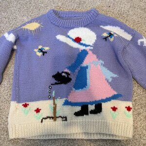 Handknit Vintage children sweater graphic cute 6 yrs purple spring cottagecore