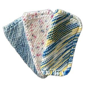 Handmade 3 New Dish Cloths Knitted 100% Cotton Cleaning 7x7 inches