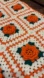 Wrap yourself in cozy artistry with this beautiful handmade afghan throw, measuring 75″ long × 45″ wide. It’s in like new, unused condition, meticulously crafted using high-quality yarn. The design features granny squares with a raised 3D floral motif of bright orange blooms, framed by green “leaf” detailing, all set against a cream-colored background. The orange florals and green leaf accents pop against the neutral cream, giving it a warm, earthy autumn vibe.