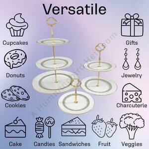 Versatile serving piece for desserts, sandwiches or use as a stacked charcuterie board, at weddings, parties or afternoon tea. Tiered stands make lovely housewarming, wedding, birthday or Christmas gifts!