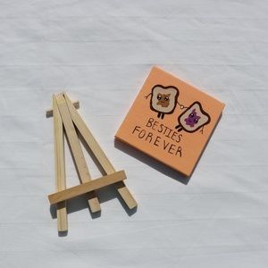 Handmade 3x3inch Mini Canvas, and free wood easel