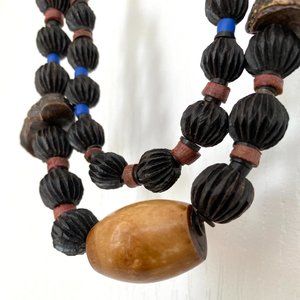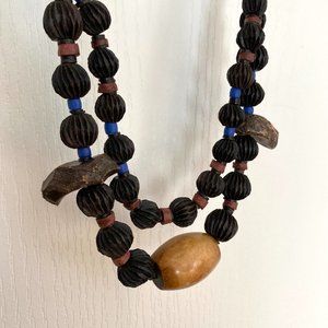 Handmade chunky wood bead necklace from a trip to Kenya, Africa. Over 20 years old, so also a vintage item. Purchased in a market from local artisan. Length is 23". Very unique piece. Excellent condition.