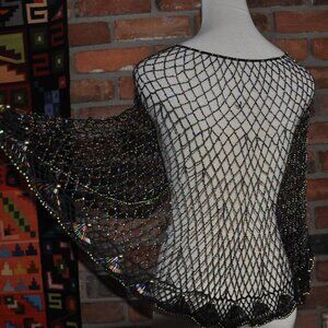 Handmade BLACK Multi Color, Fishnet, Mesh BEADED CAPELET Shawl TOP